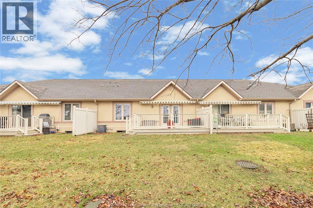 Discover this stunning ranch style townhouse nestled in a highly sought after neighbourhood of Tecumseh. Boasting an everything on one floor, spacious design with 2 large bedrooms, 3 baths (including a walk-in bathtub for added comfort and accessibility), open concept kitchen/dining/living room and a main floor laundry. The basement includes a 2 pc-bath, large rec room, utility room and lots of space for storage. This unique townhome includes indoor entry to the 2-car garage and expansive driveway. Follow the garden doors to the outdoor deck with retractable/motorized canopy for shade and privacy. With condo fees of $495/month enjoy peace of mind as you are covered for all of your exterior mainenance, including driveway, roof, windows, exterior stucco, sprinklers, streetlights, lawn and garden care, as well as snow and leaf removal. A BIG bonus is your condo fee also inclues enjoyment of the Village Grove tennis/pickleball courts and outdoor pool. You are a hop-skip-and-jump away from Lakewood walking park and trails, the waterfront, restaurants, banks, grocery store and more. (id:4555)